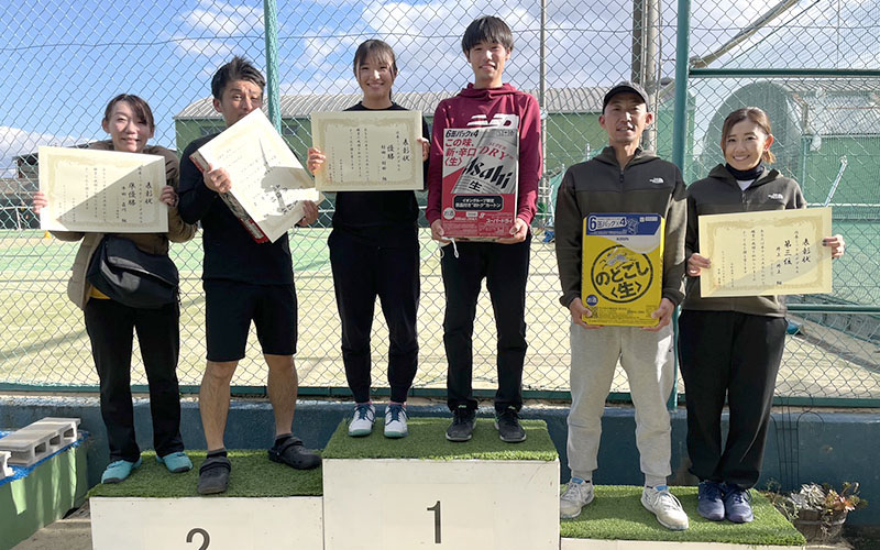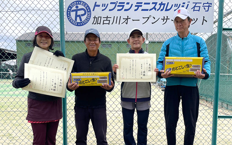 迎春ミックスダブルス大会(2023年1月3日開催) 2023年1月3日(火)、トップランテニスカレッジ石守校にて、加古川オープンサーキット「迎春ミックスダブル大会」が開催されました。結果は以下の通りです。皆様、お疲れ様でした。 -
