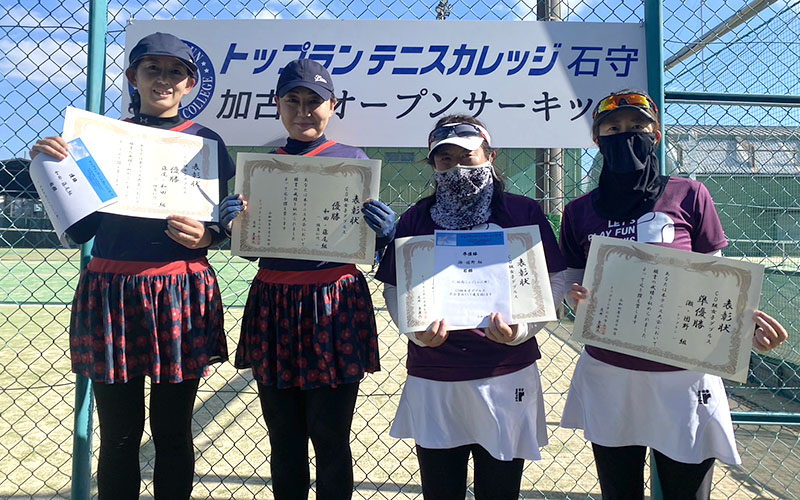 CD級女子ダブルス大会(2022年12月9日開催) 2022年12月9日(金)、トップランテニスカレッジ石守校にて、加古川オープンサーキット「CD級女子ダブルス大会」が開催されました。結果は以下の通りです。皆様、お疲れ様でした。 -