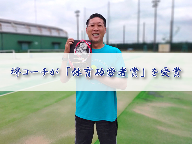 石守校の堺武司コーチが、長年にわたるテニスの普及と強化に貢献した功績がたたえられ、「体育功労者賞」を受賞しました。
