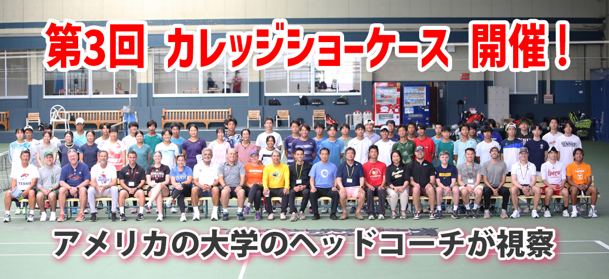 江坂テニスセンターにて、ショーケースを開催。アメリカの強豪大学のヘッドコーチが18名来日。相生学院高校(トップランジュニアEX)だけのショーケース(アメリカの大学からはスカウティング・相生学院テニス部からはトライアウト)が行われました。
