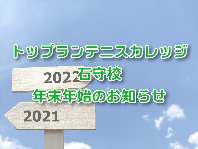 さて、トップランテニスカレッジ石守校では年末年始の営業日につきまして、下記のとおりとさせていただきます。