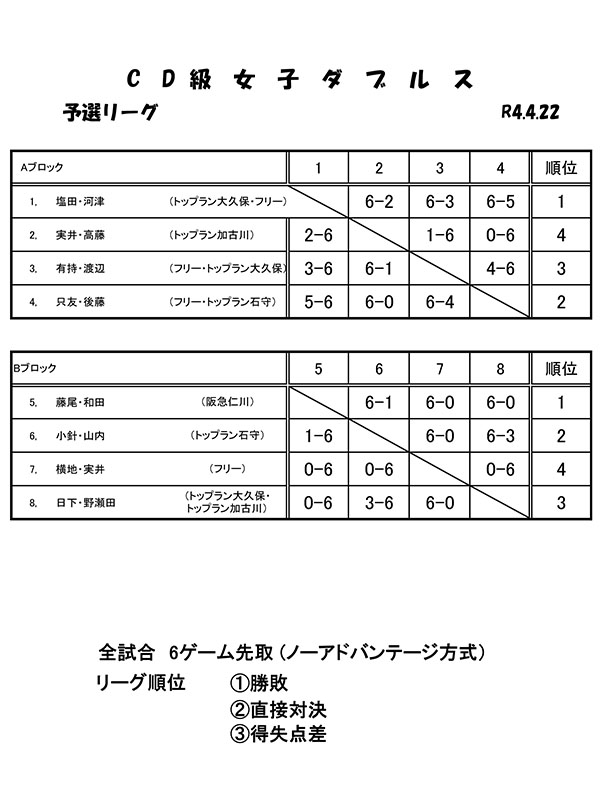 CD級女子ダブルス大会(2022年4月22日開催)