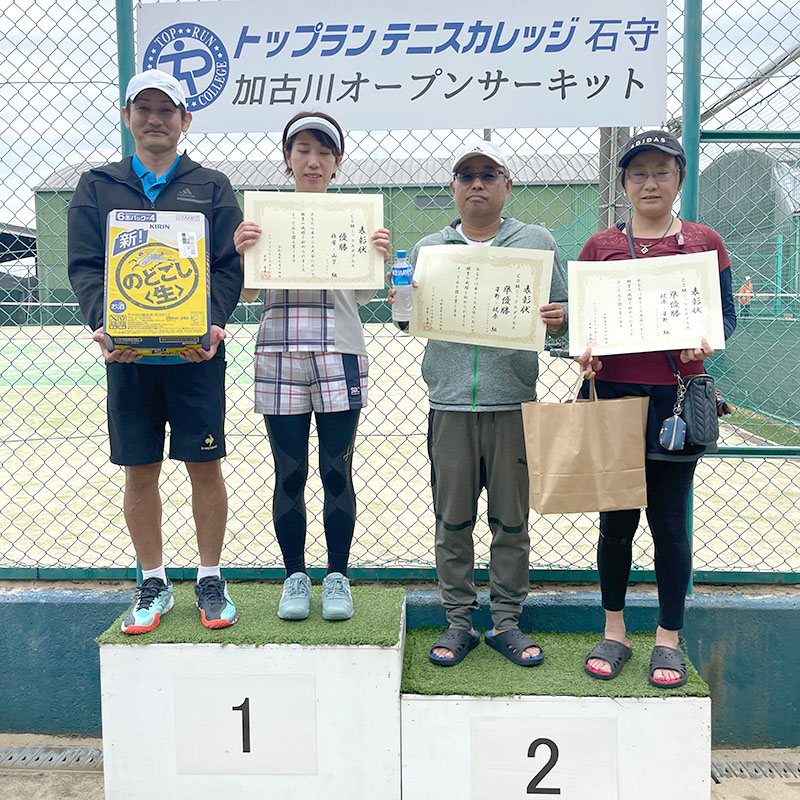 2023年10月14日(土)、トップランテニスカレッジ石守校にて、加古川オープンサーキット「CD級ミックスダブルス大会」が開催されました。結果は以下の通りです。皆様、お疲れ様でした。