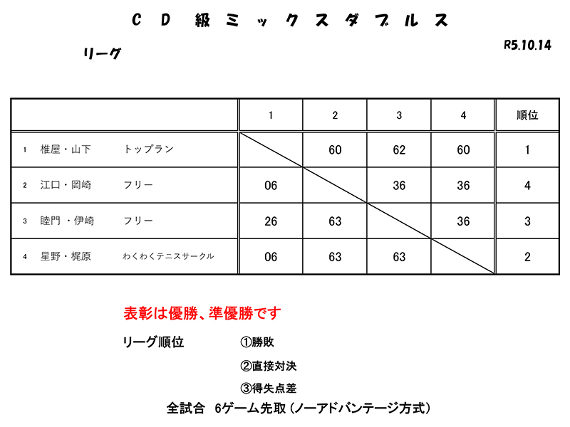 CD級ミックスダブルス大会(2023年10月14日開催)