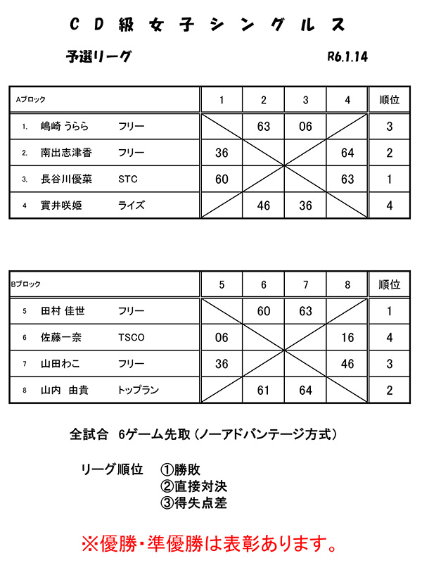 1/14 CD級女子シングルス大会結果 2024 1/18 大会結果 2024年1月18日 目次CD級女子シングルス大会(2024年1月14日開催) 2024年1月14日(日)、トップランテニスカレッジ石守校にて、加古川オープンサーキット「CD級女子シングルス大会」が開催されました。結果は以下の通りです。皆様、お疲れ様でした。 大会結果 1/8 オープン男子ダブルス団体戦結果 1/21 CD級ミックスダブルス大会結果 関連記事 9/28 CD級男子シングルス大会結果 2025年9月29日 9/20 BC級男子シングルス大会結果 2025年9月24日 9/15 CD級男子シングルス大会結果 2025年9月24日 8/23 BC級男子シングルス大会結果 2025年8月27日 7/21 CD級男子シングルス大会結果 2025年7月28日 7/19 BC級男子シングルス大会結果 2025年7月23日 7/13 初心級男子シングルス大会結果 2025年7月14日 6/28 CD級男子シングルス大会結果 2025年6月30日