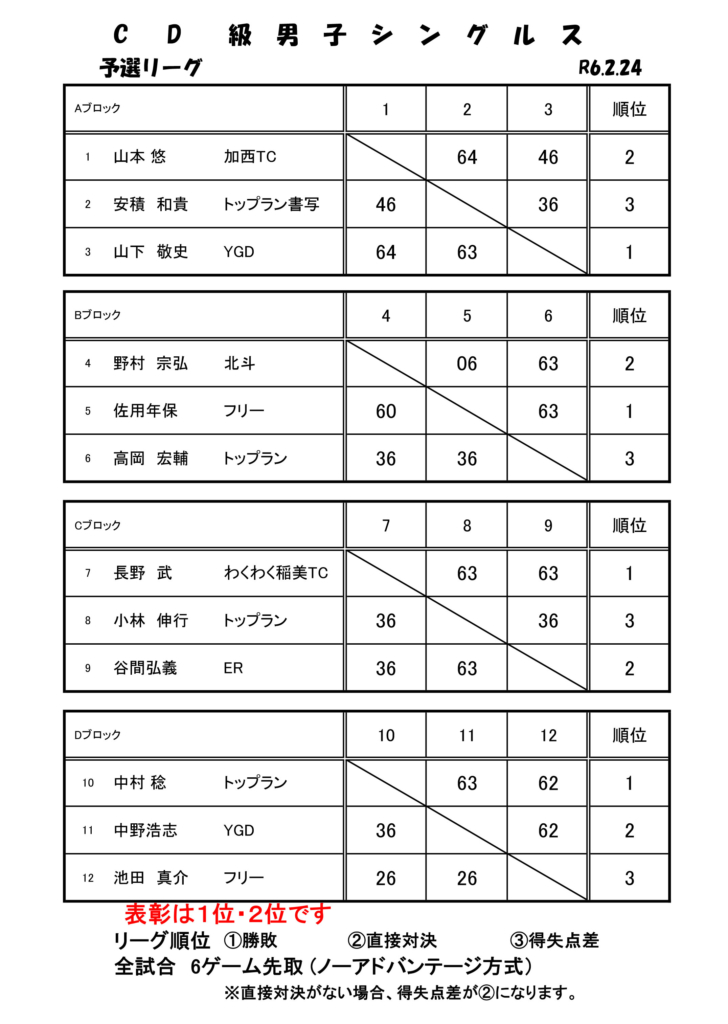 2024年2月24日(土)、トップランテニスカレッジ石守校にて、加古川オープンサーキット「CD級男子シングルス大会」が開催されました。結果は以下の通りです。皆様、お疲れ様でした。